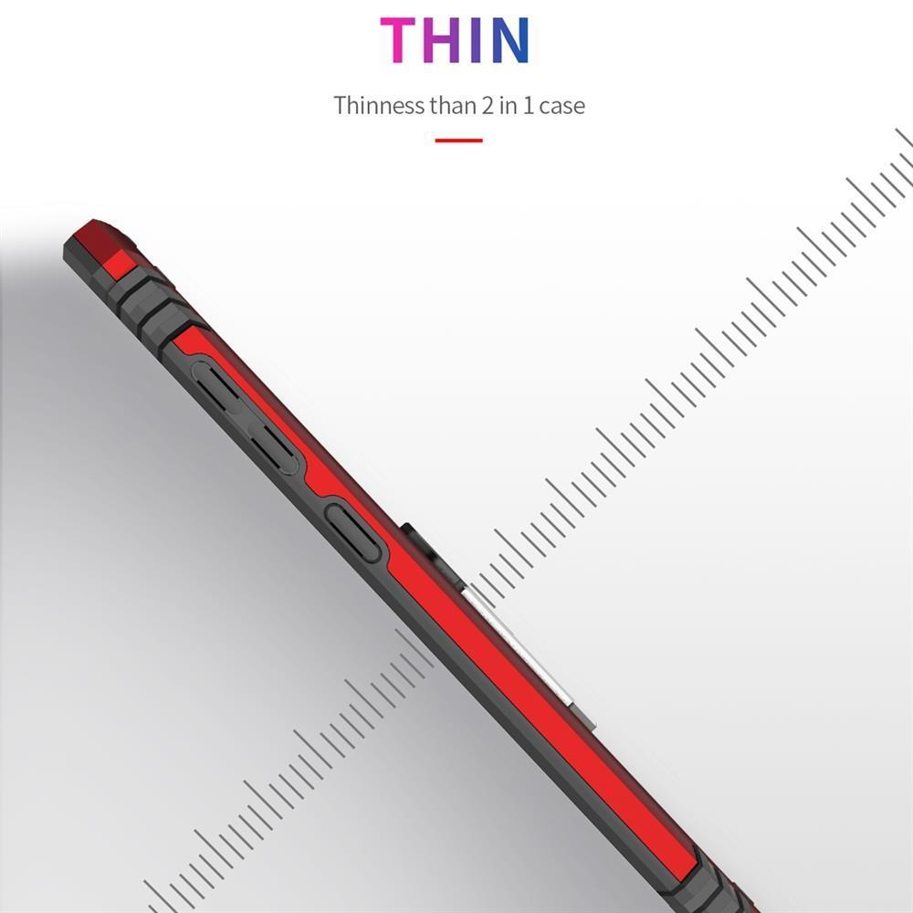 - Zwei Schichten des Schutzes: innen schwarze TPU-Einheit, die am Smartphone anliegt und außen eine Kunststoff-Abdeckung, die die Konstruktion miteinander festigt