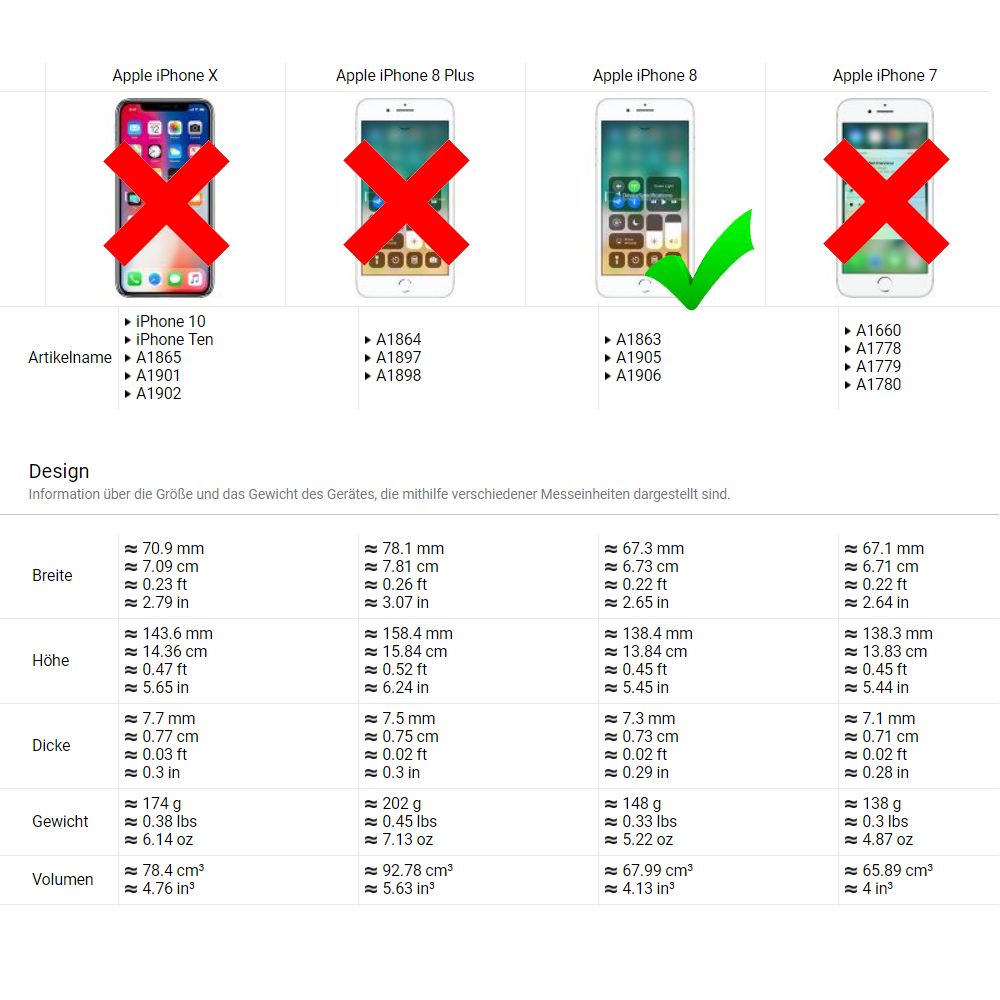 Achtung!!! Nicht für iPhone 8 Plus (5,5 Zoll) geeignet!