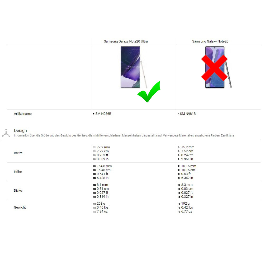 ACHTUNG! Nicht für das SAMSUNG GALAXY NOTE 20 passend!